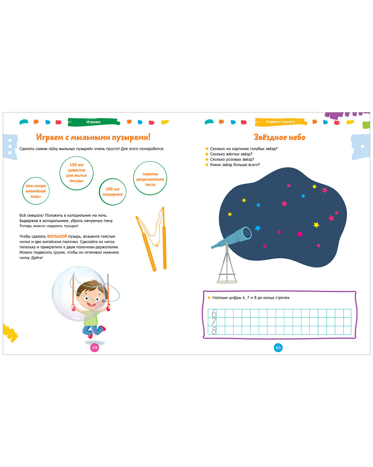 "200 увлекательных игр и заданий на развитие интеллекта на каждый день. 3-6 лет" - без сомнения понравилось пособие! Книга большого формата, очень красочная, много заданий. Задания разноплановые, тем и интереснее, на развитие логического мышления, творческого, на закрепление геометрических фигур, на сравнение и анализ, решение задач, закрепление счета, есть игры, задание нарисовать, даже есть рецепт шоколадных конфет. Все это точно заинтересует ребенка, особенно увлекают рисунки и картинки, они на весь лист А4, задания не повторяются и идут на усложнение, в начале книги младший возраст, далее - для более старшего возраста.