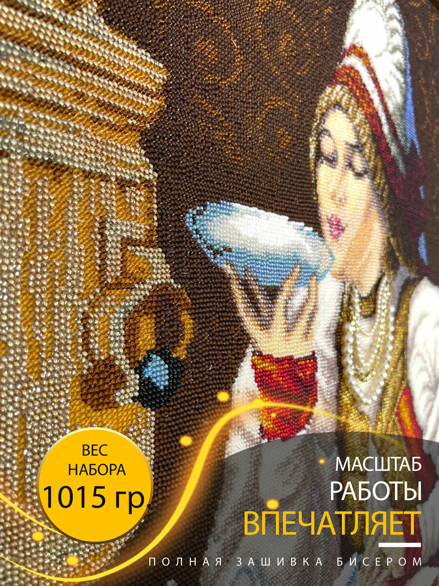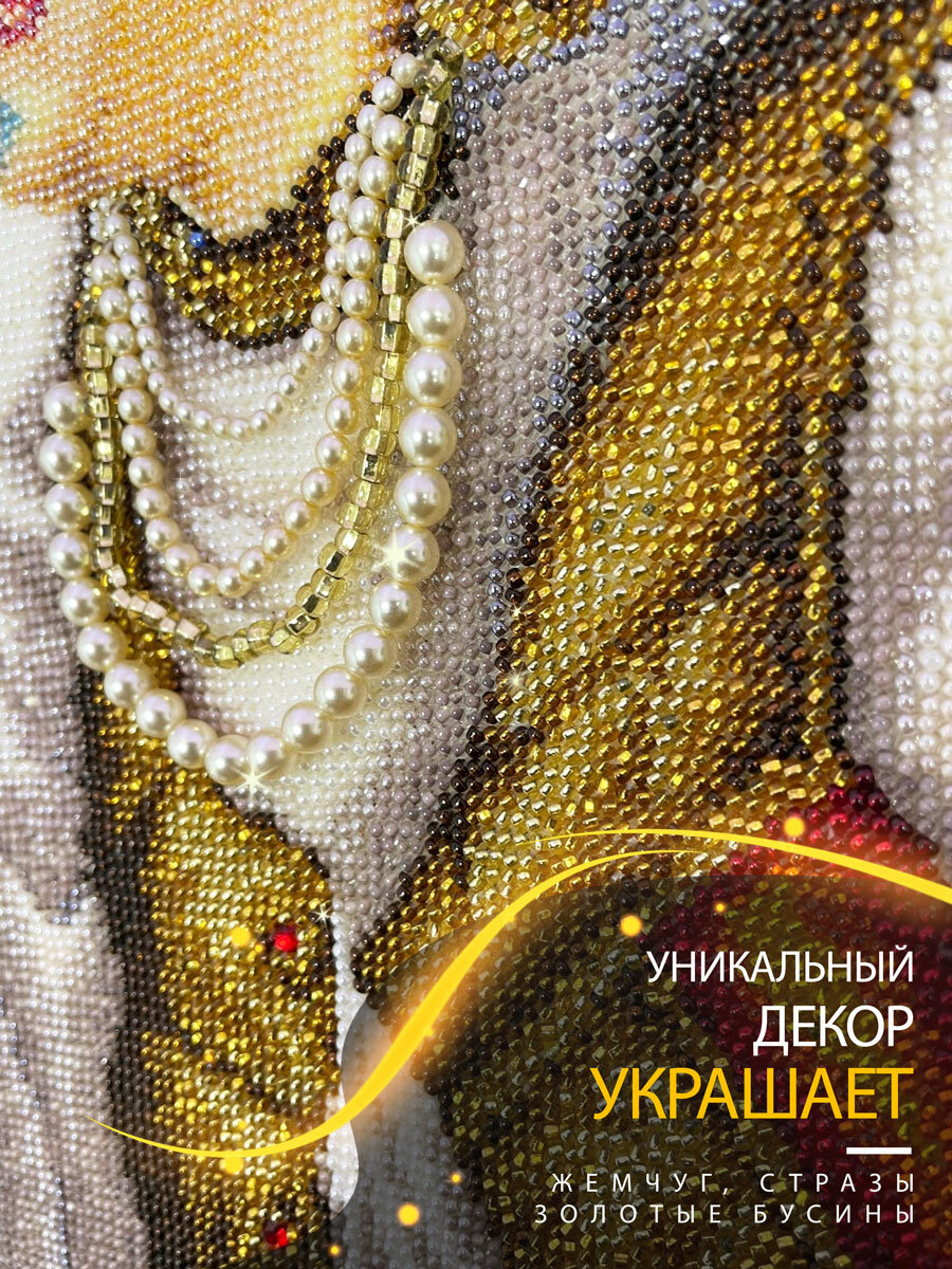 В набор входит: чешский бисер, жемчуг (Чехия), стразы Чехия, канва Zweigart (Германия) Аида №14, схема для вышивания, игла бисерная, инструкция. Канва без нанесения рисунка. Схема черно-белая. Полная зашивка бисером.