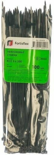 Хомут кабельный Fortisflex КСС 49409, 3х200 нейлон, черный, в упаковке 100 шт