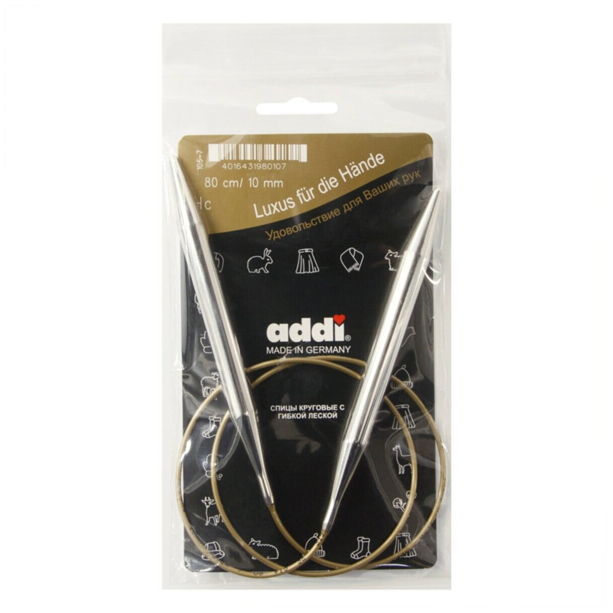 105-7/10-80 Спицы круговые супергладкие никель №10 80 см ADDI