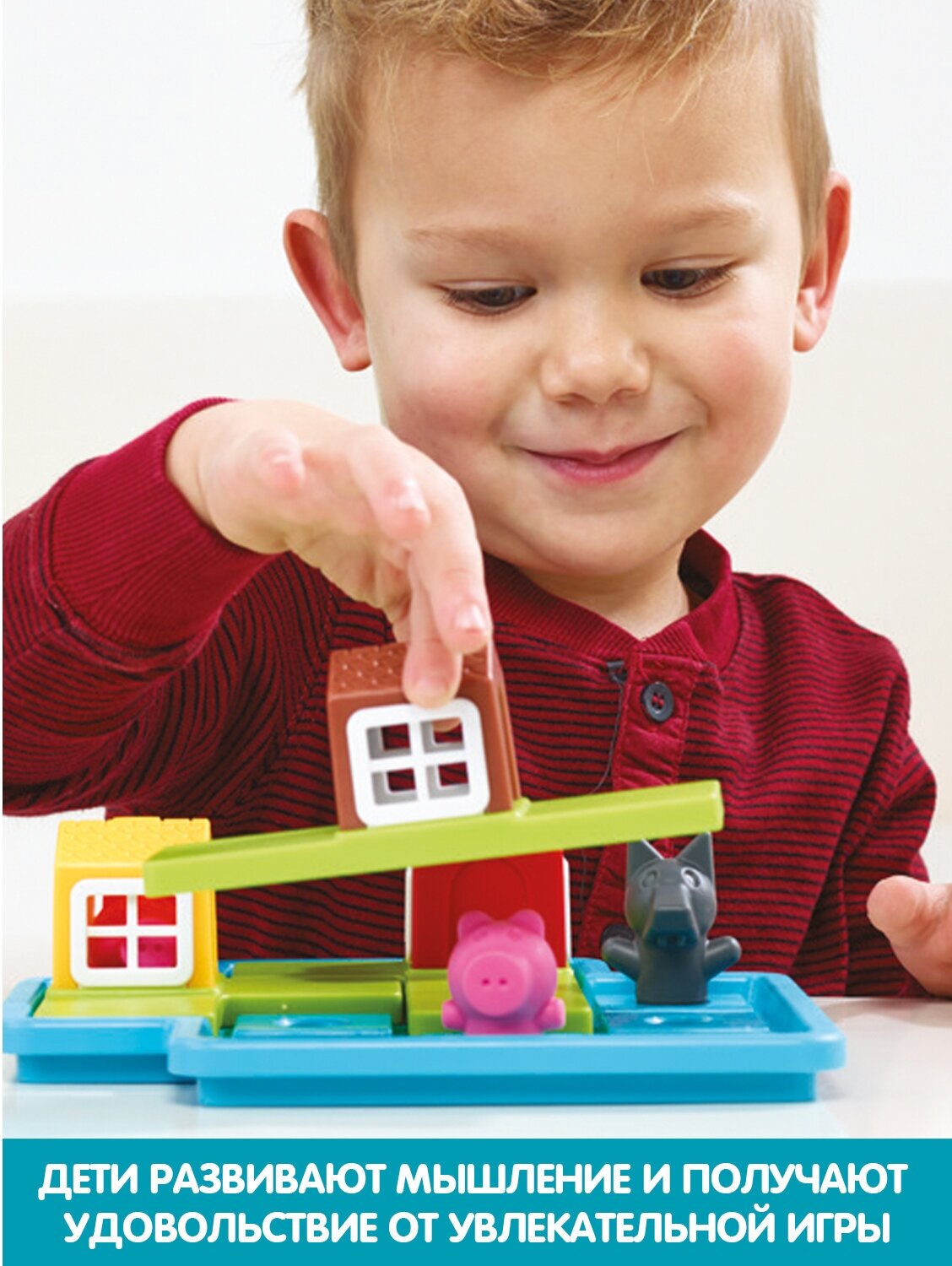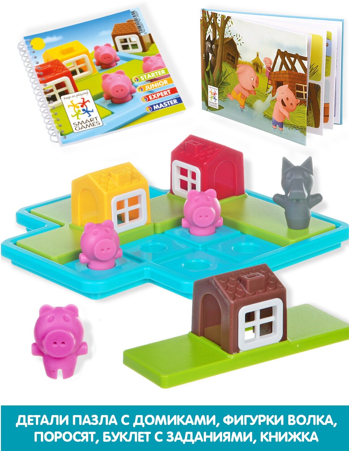 Откройте магию популярной сказки в этой игре-головоломке для дошкольников. Вы можете помочь трем поросятам построить домики? Разместите домики так, чтобы поросята играли снаружи, когда волка нет, а если Вы заметили волка, быстро спрячьте поросят в домики! Игра включает буклет с 48 заданиями (24 с волком и 24 без волка) и иллюстрированную книгу с картинками современной интерпретации оригинальной истории. Как играть: поместите поросят и волка на игровое поле в соответствии с выбранным заданием. Разместите оставшиеся детали головоломки на игровом поле так, чтобы поросята играли вне домиков, когда волка нет, и внутри домиков, когда волк снаружи. У каждого задания есть только одно решение. Игра не только увлекает, но и обучает, развивает логическое мышление, зрительное и пространственное восприятие.