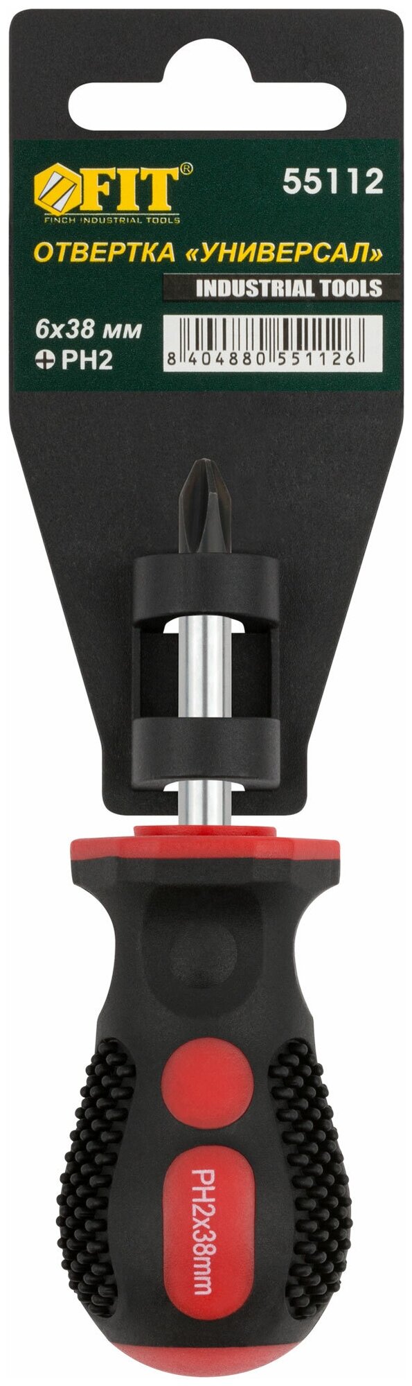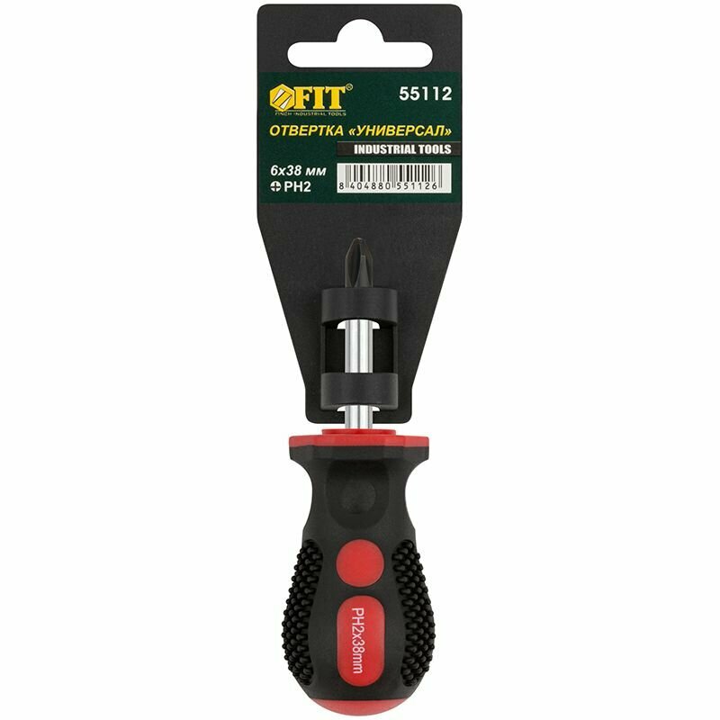 Отвертка PH2 6х38 мм FIT Универсал (Cr-V, прорезиненная ручка)