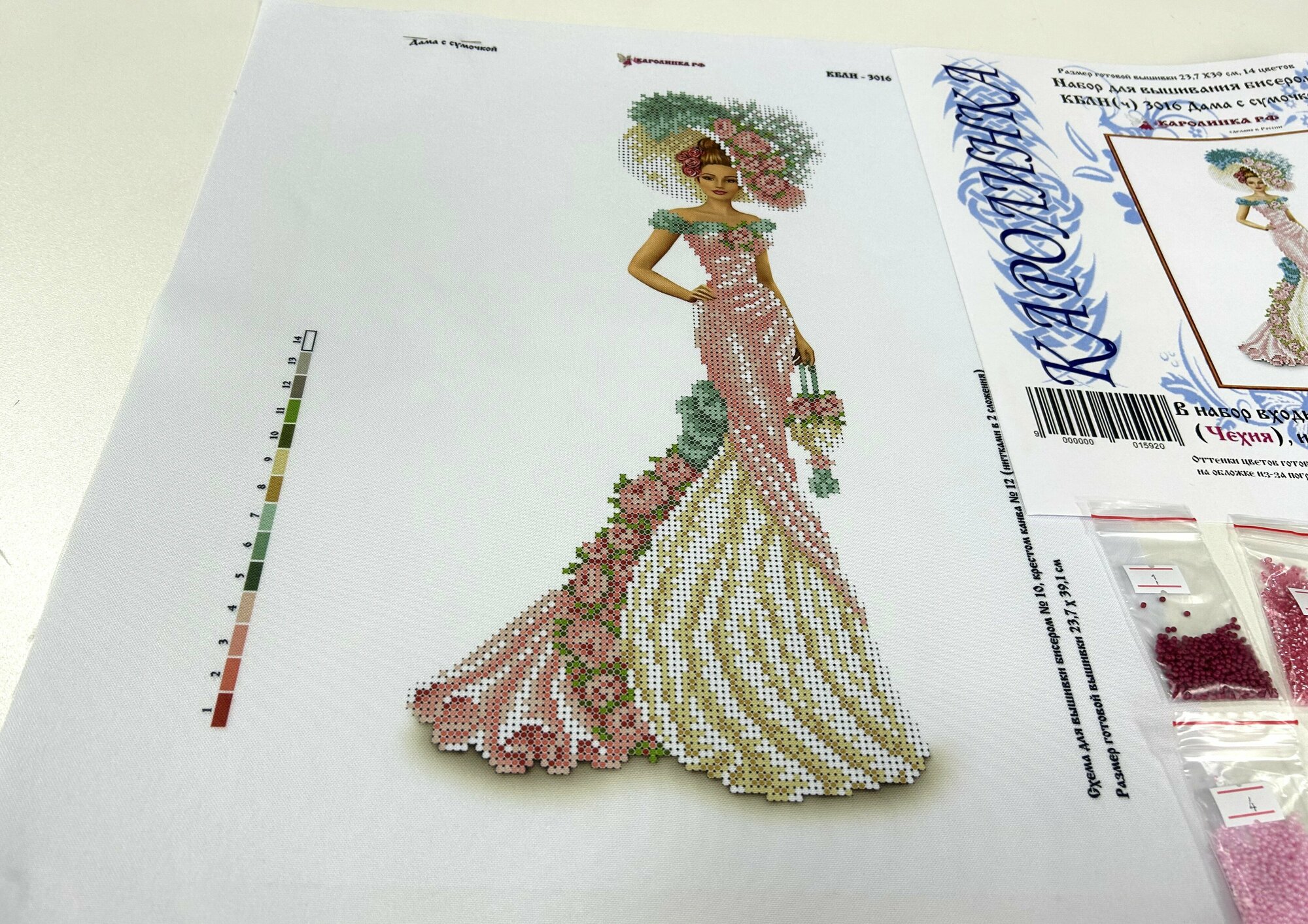 Набор для вышивки бисером «Дама с сумочкой» входит в серию «Мода 19 века». Включает в себя ткань с рисунком. Бисер подобран в точном соответствии с оттенком, указанным на схеме. Схема для вышивки детально проработана. На ней подробно размечены участки разных оттенков вплоть до мельчайших нюансов. Внимание уделяется каждому элементу, чтобы с рисунком было удобно работать.Многие люди находят удовольствие в медитативном процессе вышивки, который помогает им расслабиться и снять стресс. Это занятие не менее интересное и увлекательное, чем картины по номерам. Оно позволяет развить творческие навыки и фантазию. А также создавать оригинальные и красивые произведения искусства своими руками, даже не имея художественного таланта.В набор для вышивания бисером входит:· основа из габардина, дублированного флизелином;· бисер (Чехия, 14 цветов);· иголка для вышивки;· подробная инструкция.Набор для вышивания бисером с частичной зашивкой идеально подойдёт и начинающим, и опытным рукодельницам. Станет прекрасным подарком девушке или беременной женщине. Работа с бисером поможет гармонизировать эмоциональный фон. Набор для вышивки бисером содержит все необходимые материалы, включая тонкую иглу с продолговатым ушком. Размер вышитой работы – 27х36 см.Вышивка картины бисером – это трудоёмкое и требующее усидчивости занятие. Более сложное, чем вышивание нитками мулине (крестом) на канве. Но для вышитых бисером картин характерен более неповторимый и изысканный вид. Готовые работы выглядят очень элегантно и завораживающе. Отличаются яркостью и блеском, что придаёт им особую привлекательность!