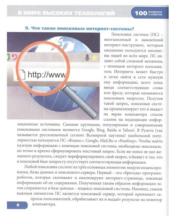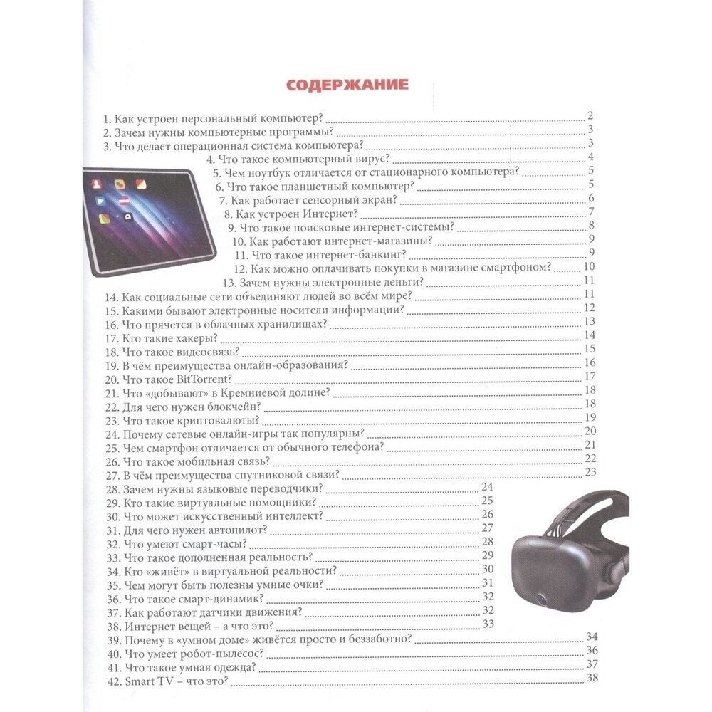 Энциклопедия тоненькая, красивая книга. Очень много тем с кратким описанием и фотографиями. От самых простых терминов и понятий компьютерной тематики до новинок на момент печати книги. Каждая тема раскрывается не более, чем на страничку, но без "воды" или сложностей, у меня ребенку 8 лет все было понятно. Рекомендую к прочтению, а так же в качестве подарка ребенку.