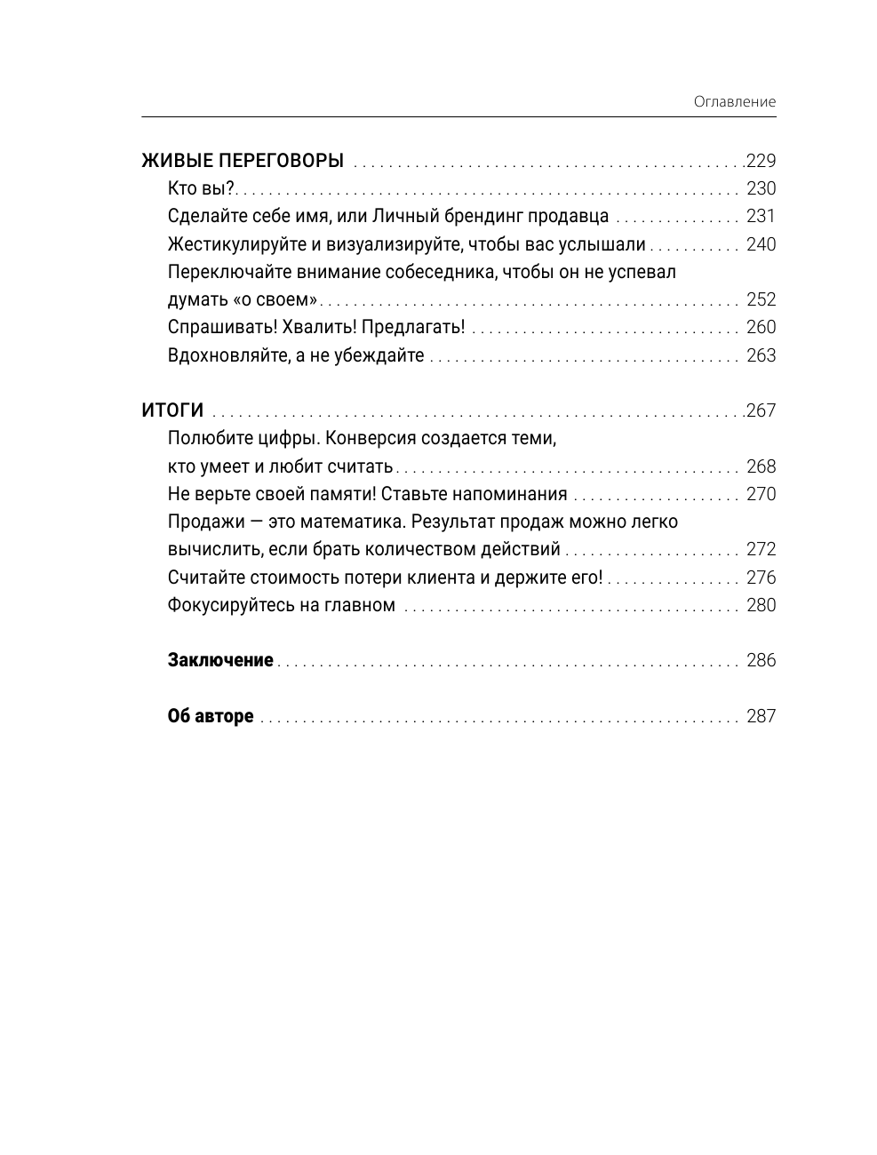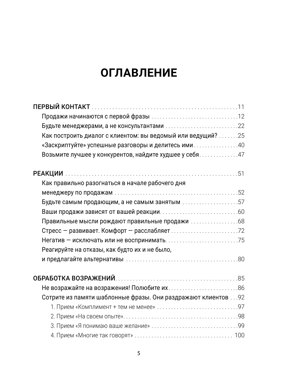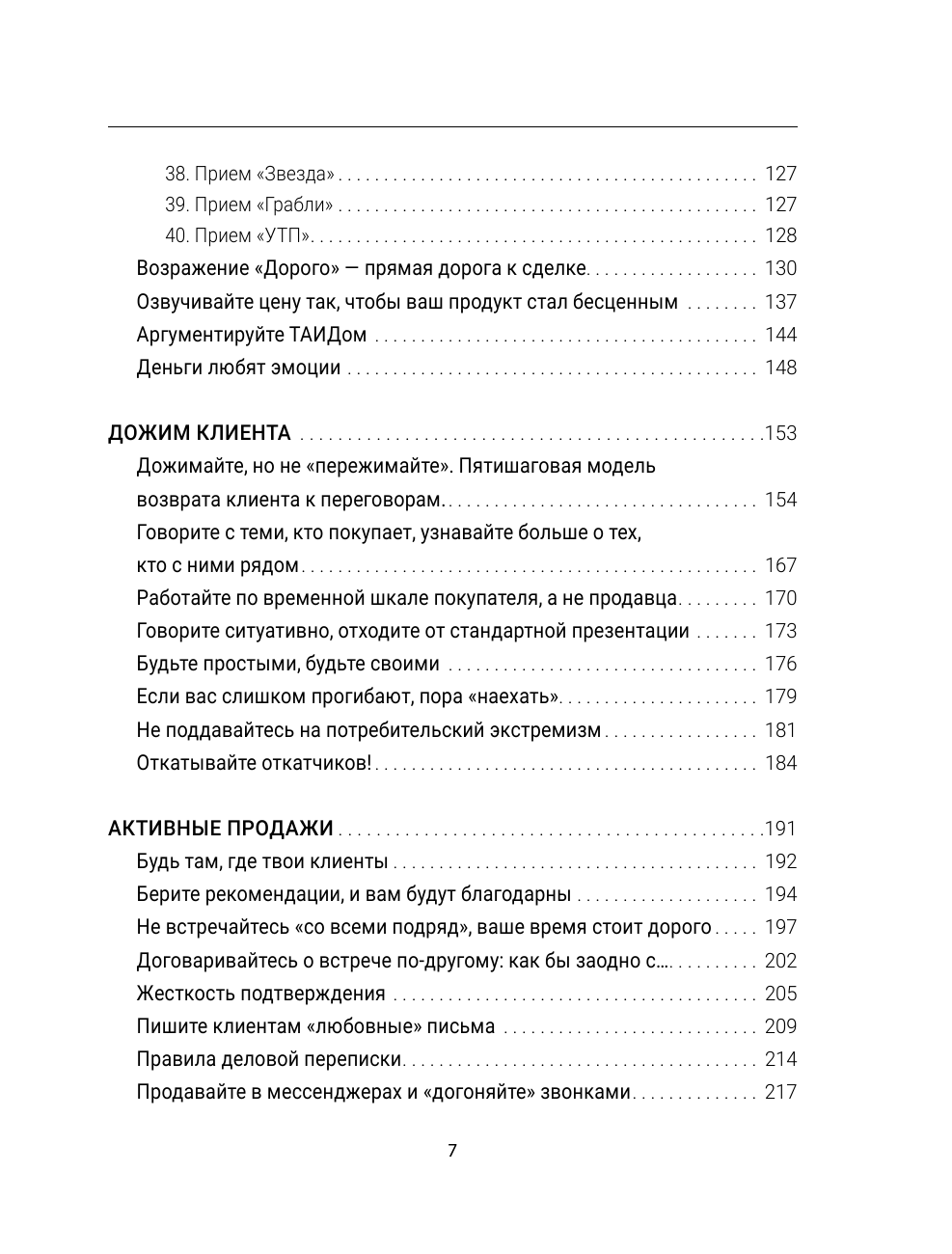 Очень полезная книга. В ней содержатся решения классических и не очень проблем, возникающих при переговорах: когда клиенту дорого, неудобно, неинтересно или невыгодно. Конкретные примеры помогают быстро вникнуть в суть. Все приемы предлагаются в готовом виде: их можно распечатать, положить перед собой и сразу использовать. Очень удобно!