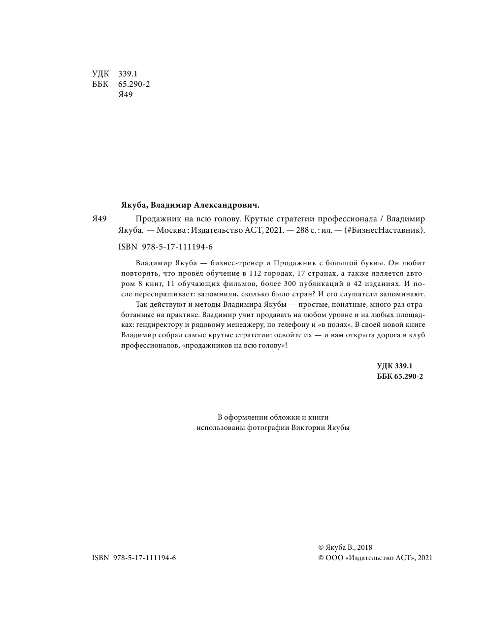 Продажник на всю голову. Крутые стратегии (Владимир Якуба); Издательство АСТ, 2018