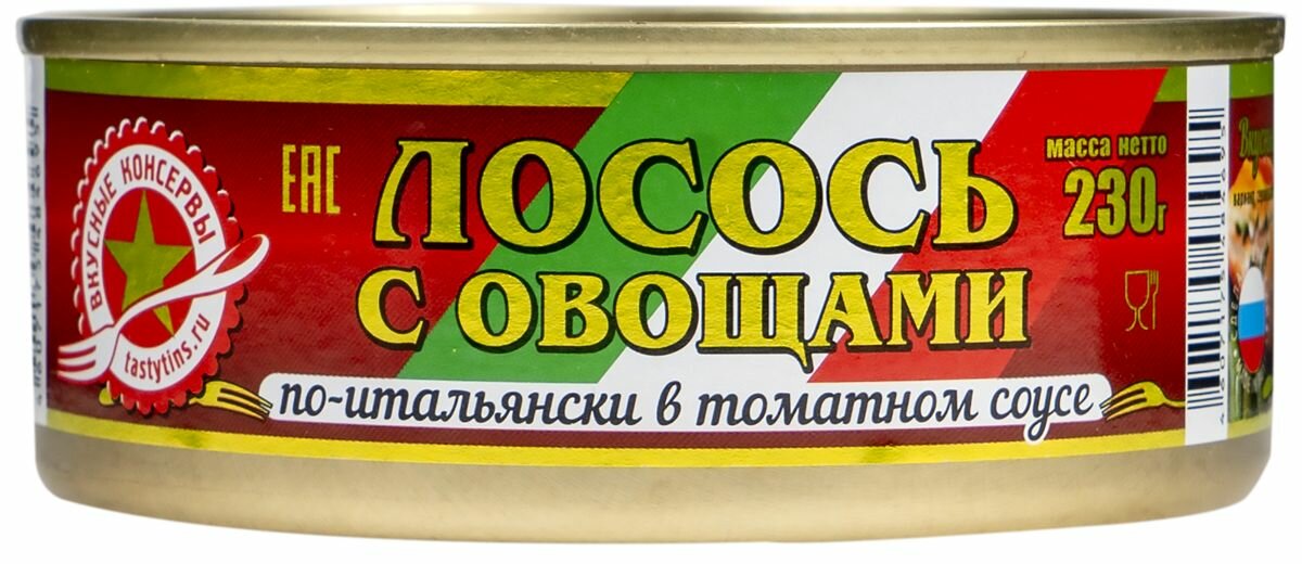 Сервис сравнения цен СкидкаГИД предлагает сравнить цены на товар «Лосось Вкусные консервы по-итальянски с овощами в томатном соусе 230г Балт-Ост»
