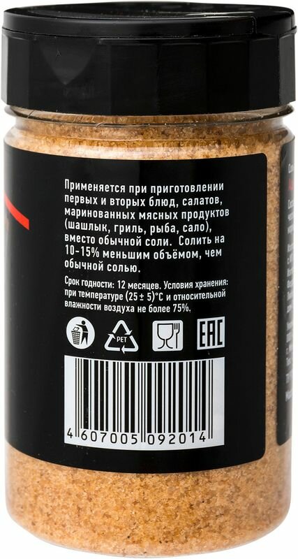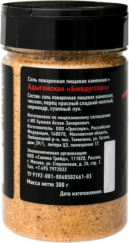 | Состав | соль поваренная пищевая, чеснок, кориандр, перец красный сладкий, перец красный хлопьями. |