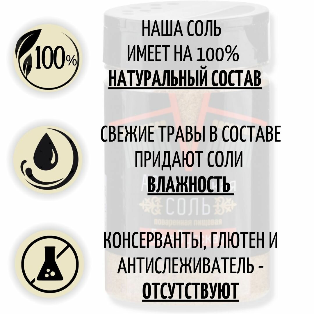 Соль Адыгейская Бжедугская 300г - это традиционный продукт национальной адыгейской кухни. Он производится из белой пищевой поваренной соли и оригинальной смеси специй. Особенность технологии состоит в том, что специи не просто перемешиваются, а пропитывают кристаллы соли, наполняя их восхитительным вкусом и ароматом. Бжедугская соль обогащена паприкой, чесноком, кориандром и сушеным луком. Лучше всего ее использовать для приготовления мяса, шашлыка, сала, рыбы, салатов, гарниров, маринадов и солений. Благодаря повышенной солености расход приправы на 12-15% ниже по сравнению с обычной солью.