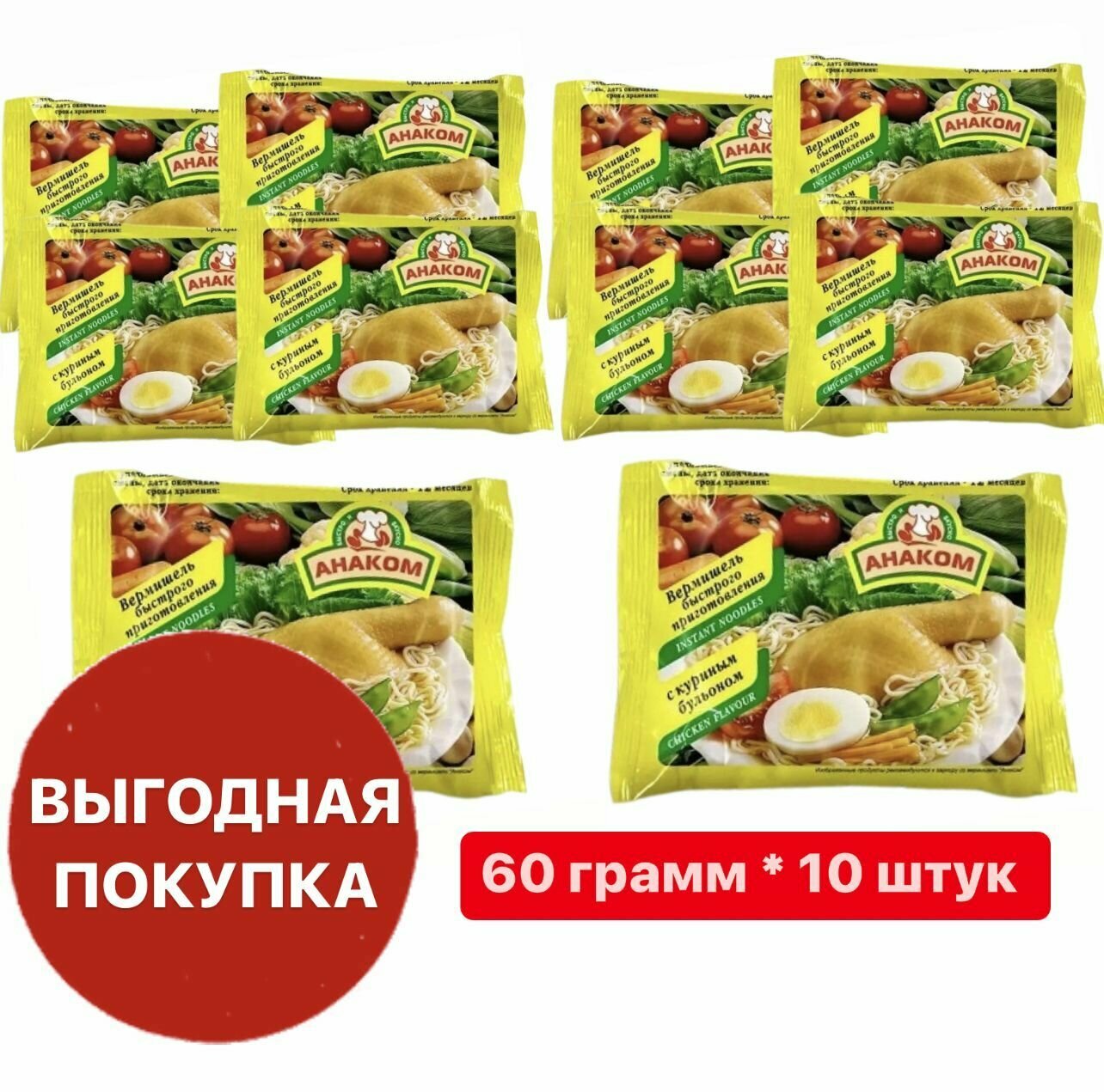 Сервис сравнения цен СкидкаГИД предлагает сравнить цены на товар «Вермишель Анаком с куриным бульоном 60г Импрод»