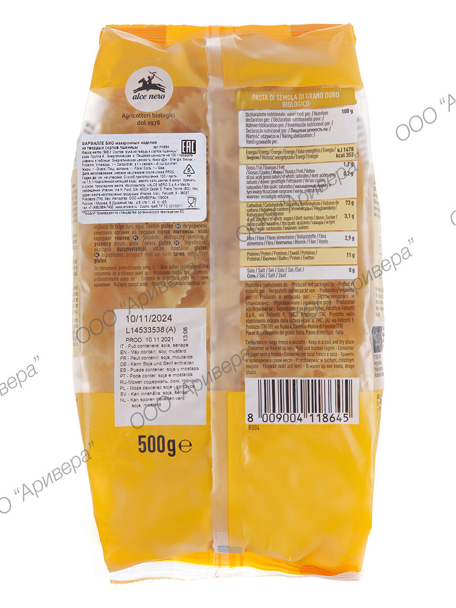 Макароны Alce Nero Farfalle Biologici-Organic 500г