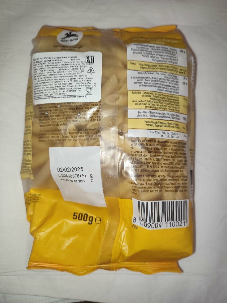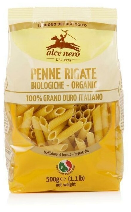 Макароны Alce Nero Penne Rigate Biologici-Organic 500г - это органический итальянский продукт, который производится из твердых сортов пшеницы (Senatore Cappelli, Simeto и Quadrato), выращенной без использования химии и пестицидов, и чистой родниковой воды из Доломитовых Альп. Для формования макаронных изделий используется экструзия (продавливание) сквозь специальные бронзовые штампы. Благодаря этому старинному способу поверхность макарон получается шероховатой и отлично впитывает соусы любой консистенции. Penne Rigate - небольшие трубочки-перья, которые можно подавать с любыми мясными, овощными и сливочными соусами, а также использовать для приготовления запеканок и салатов.