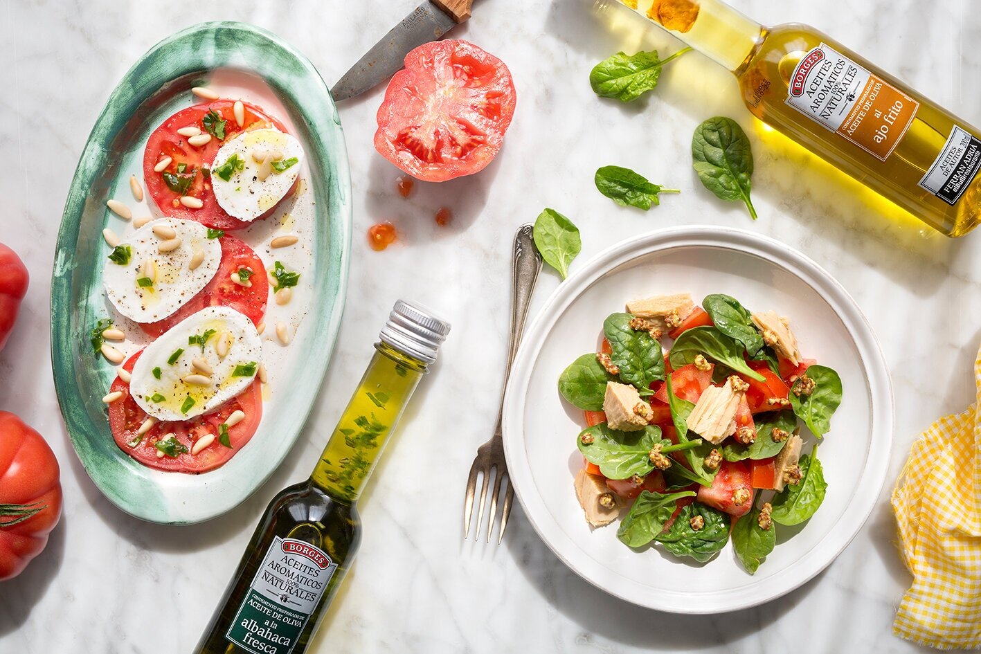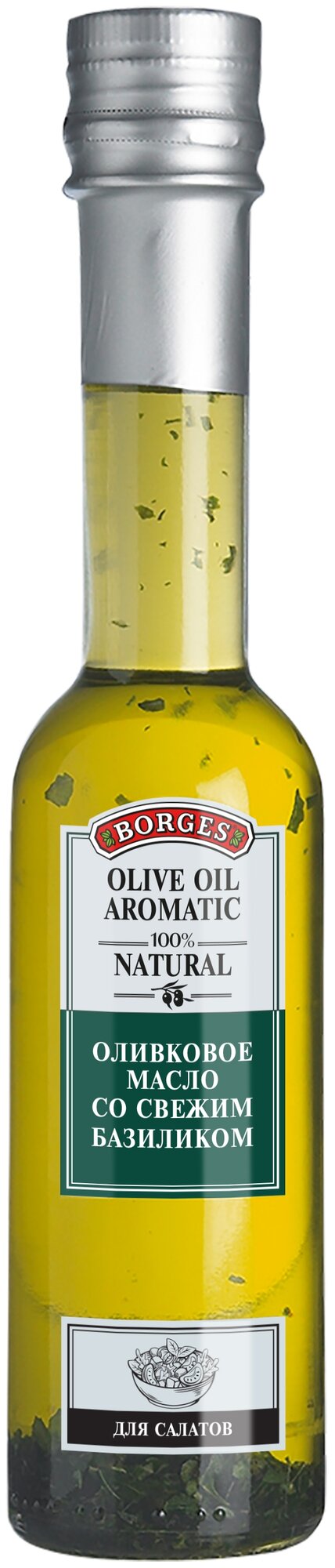 Натуральное ароматное оливковое масло Borges со свежим базиликом составит идеальную партию для салатов. С ним вы можете каждый день добавлять новые оттенки вкуса любимым блюдам. Натуральный продукт: без эссенций, красителей и консервантов.