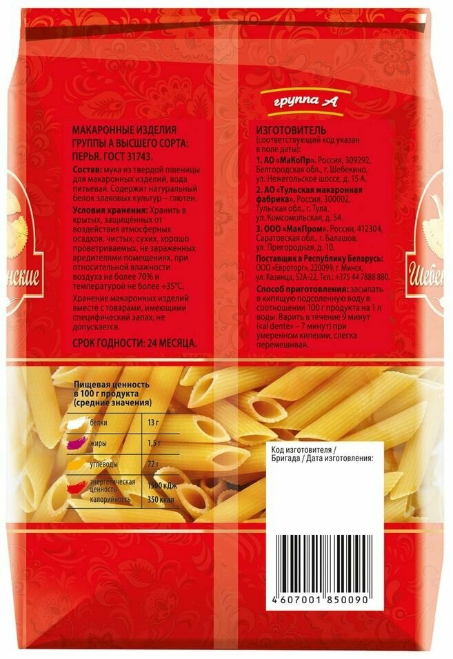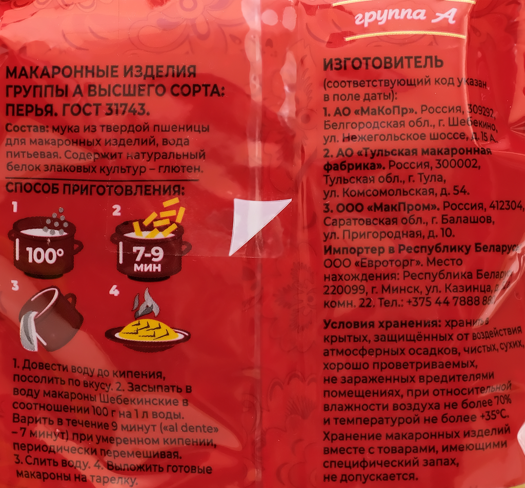 | Изготовитель | Россия, ПАО "МаКоПр", АО "Тульская макаронная фабрика", ООО "МакПром". |