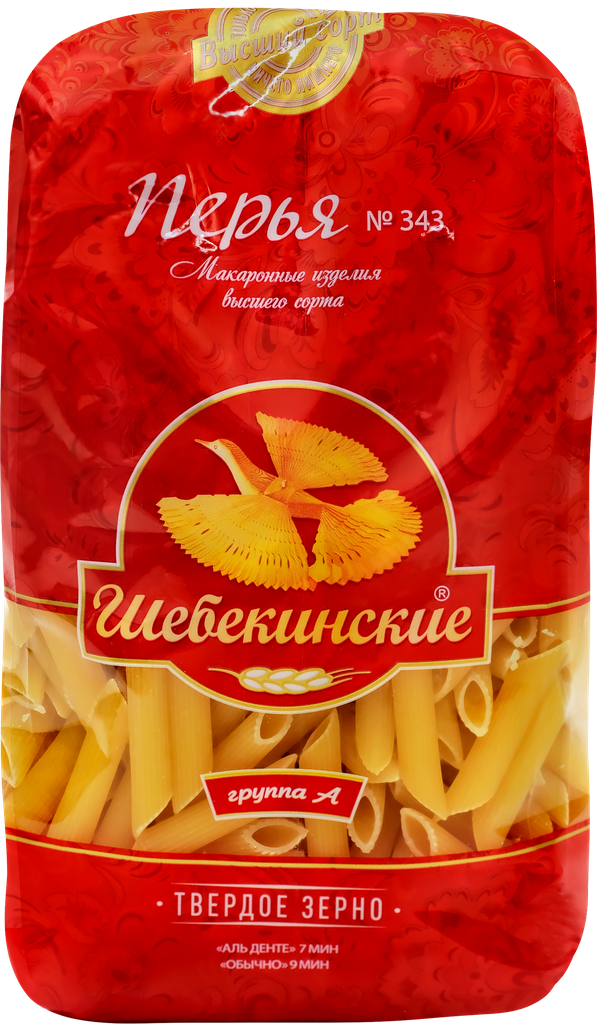 Макароны Шебекинские №343 Перья 450г - это макаронные изделия из твердых сортов пшеницы, которые производятся на современном оборудовании из Италии и максимально приближены по качеству и вкусу к итальянской пасте. Перья - это короткие полые макароны с косыми срезами и рифленой поверхностью. Чтобы получить правильную текстуру al dente, этот вид следует варить примерно 8 минут. Лучше всего они сочетаются с густыми томатно-мясными, сливочными, грибными и рыбными соусами. Упакованы в фирменный пакет с "птичкой счастья".