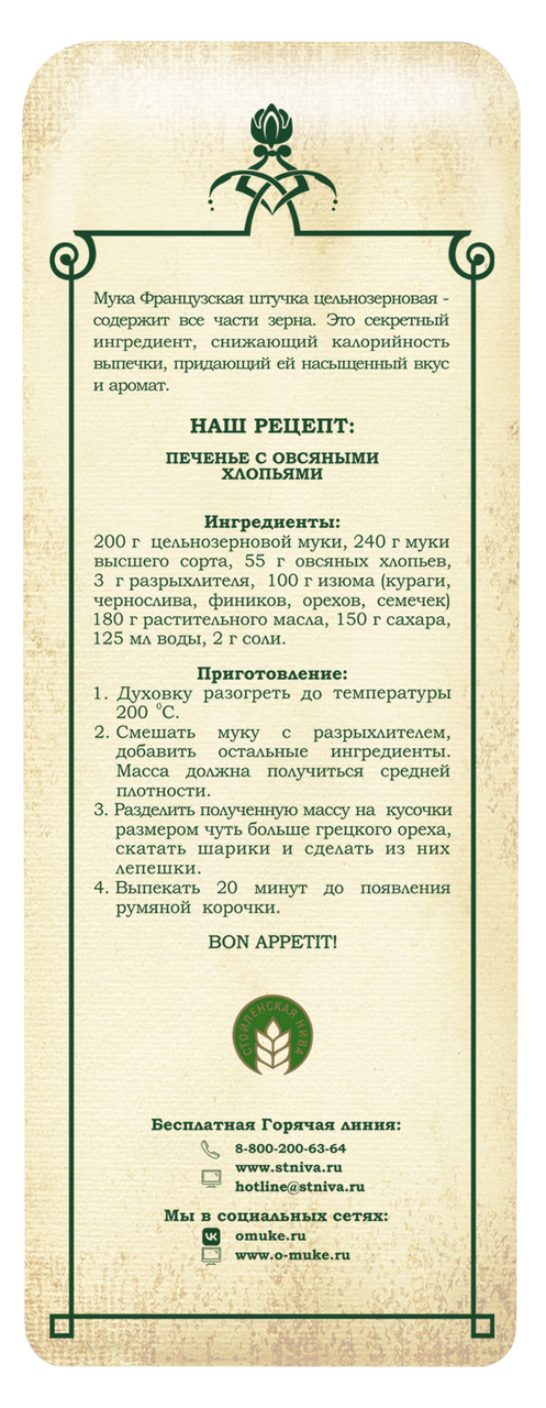 | Состав | Мука пшеничная хлебопекарная сорт Обойная. |