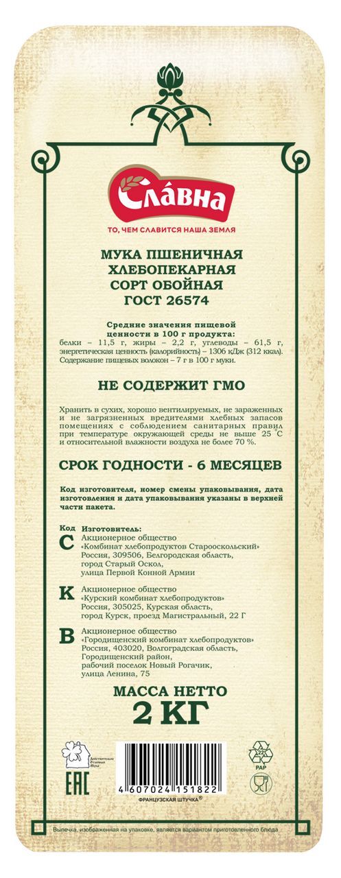 | Производитель | ЗАО "Комбинат хлебопродуктов Старооскольский" |