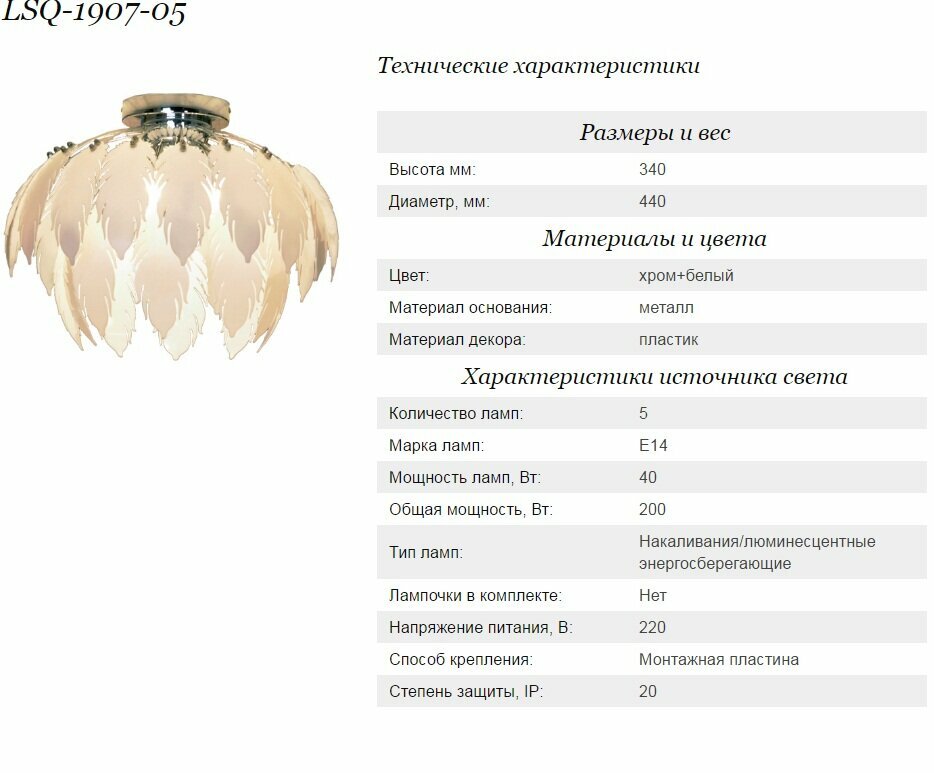 | цвет плафона | белый |