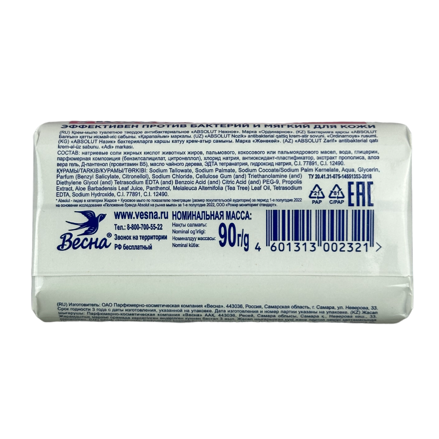 Сервис сравнения цен СкидкаГИД предлагает сравнить цены на товар «Мыло Absolut с маслом чайного дерева 90г Весна»