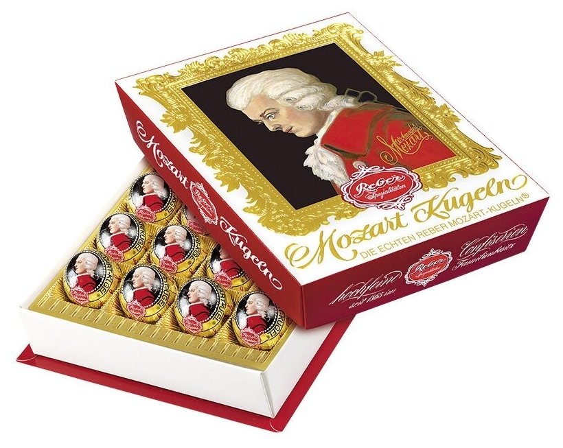 Reber Mozart Kugeln - непревзойденные шоколадные конфеты, которые заполнены свежими зелеными фисташками, миндалем, фундуком, а сверху покрыты слоем горького и молочного шоколада.