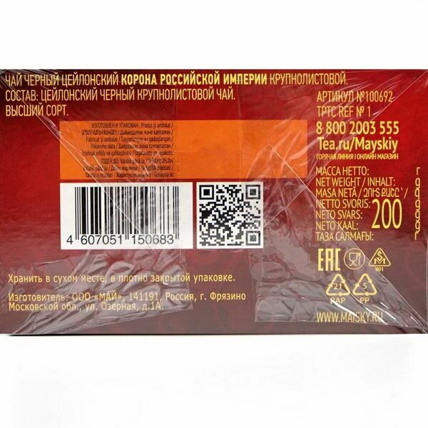 Сервис сравнения цен СкидкаГИД предлагает сравнить цены на товар «Чай черный Майский Корона Российской Империи 100г»