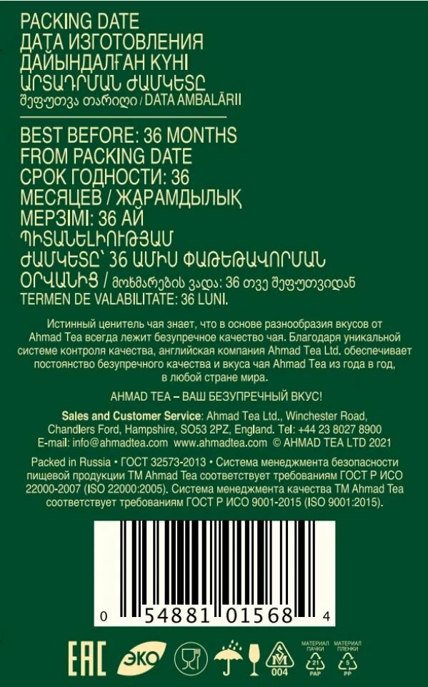 | Изготовитель | Фабрика "Ahmad Tea", Россия |