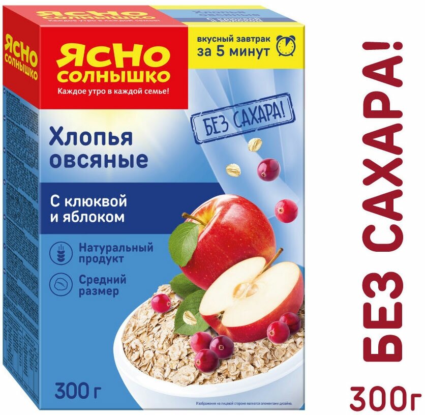 Хлопья Ясно солнышко Овсяные с клюквой и яблоком 300г Петербургский МК