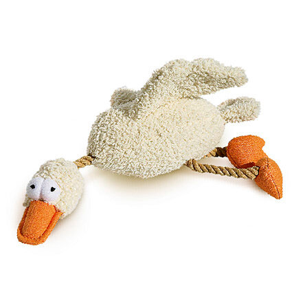 Мягкие игрушки для собак хоть и похожи на обычные плюшевые, однако сделаны из особого материала, устойчивого к собачим зубам. Эта симпатичная уточка, разработанная специалистами и дизайнерами компании Гигви, сшита именно из такого высококачественного и прочного материала. Он экологичен, отлично впитывает слюни, легко стирается и полностью безопасен для здоровья животного. Голова, тушка и лапки утки соединены прочной толстой веревкой, так что с игрушкой можно не только просто возиться но и играть в перетягивание с хозяином. Звонкие пищалки задорными звуками будут поддерживать азарт и пробуждать охотничьи инстинкты даже в самых ленивых питомцах. Не сомневайтесь, с этой очаровательной дичью Ваш пес не захочет расстаться ни дома, ни на прогулке.