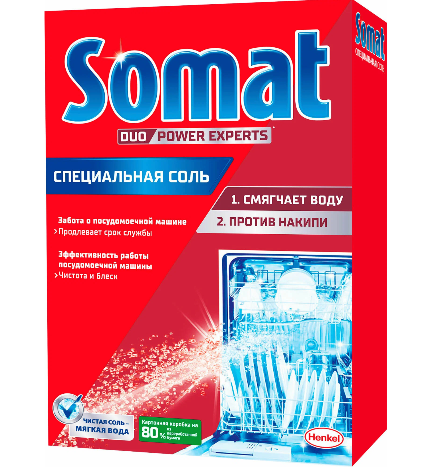 Описание товара:Сомат Соль защищает посудомоечную машину от образования известкового налета и поэтому продлевает срок службы Вашей машины. Меры предосторожности: Сомат Соль несъедобна и не подходит для приготовления пищи. Хранить в недоступном для детей месте. При попадании в глаза немедленно промыть водой.Состав товара:Хлористый натрий.Меры предосторожности:Беречь от детей. Сомат Соль несъедобна и не подходит для приготовления пищи. Избегать попадания в глаза. При попадании в глаза промыть большим количеством воды. Хранить при температуре от +5 до +40°С.Способ применения:Заполните отделение для соли, руководствуясь инструкцией к посудомоечной машине. Машина дозирует необходимое количество соли автоматически.
