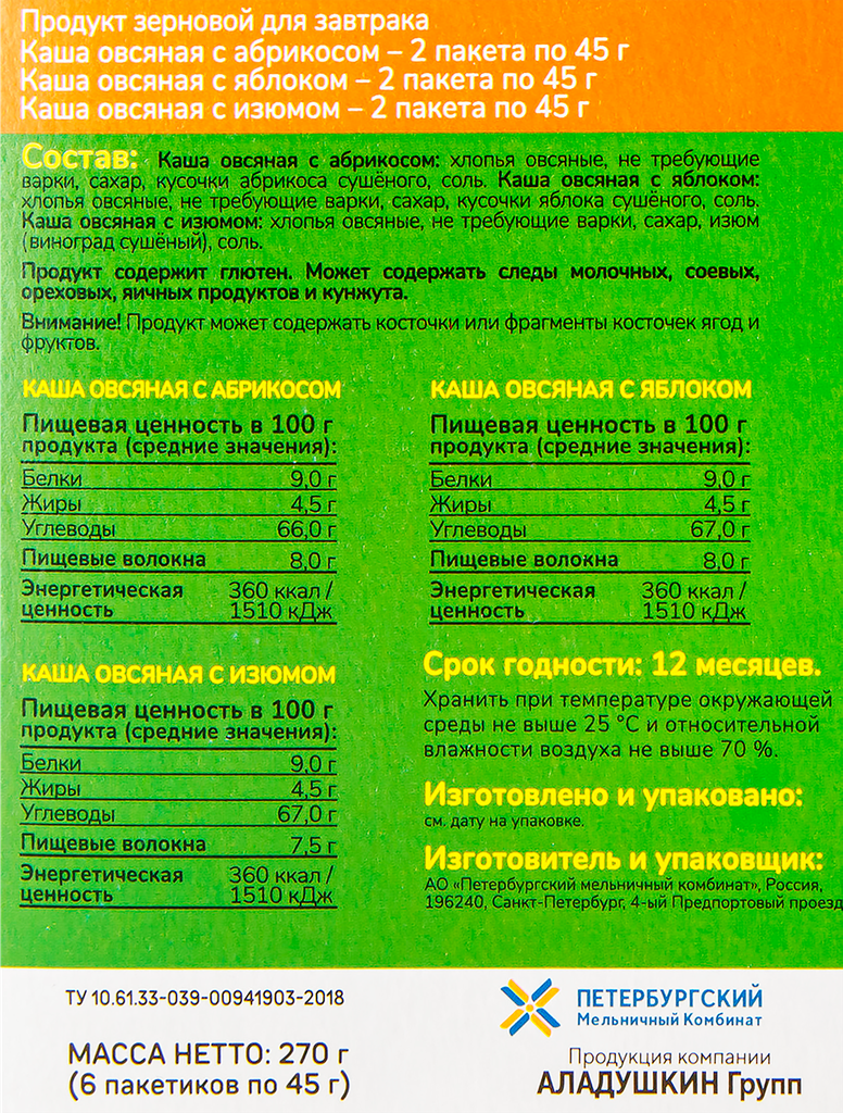 | Производитель | ОАО "Петербургский мельничный комбинат" |