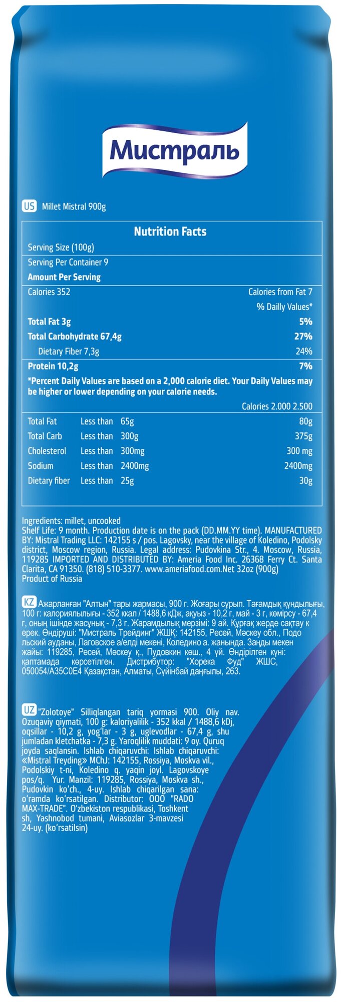 Пшено Мистраль Золотое 900г Мистраль Трейдинг