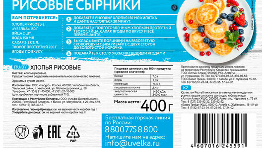 | Состав | Хлопья рисовые из цельной крупы |