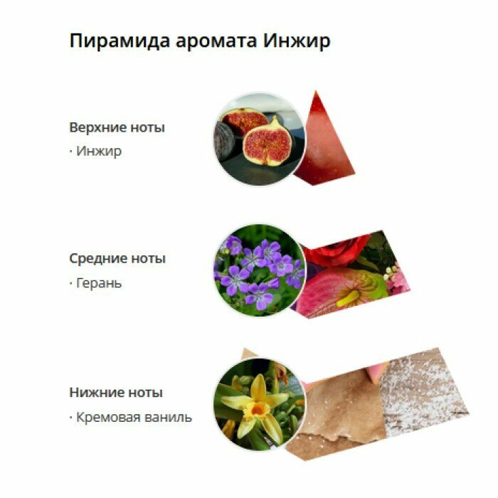 Фруктовый аромат спелого инжира с нотами сочной малины, клюквы, лилии и ванили разработан ведущими парфюмерными домами европы. Уникальная рецептура на основе компонентов растительного происхождения.