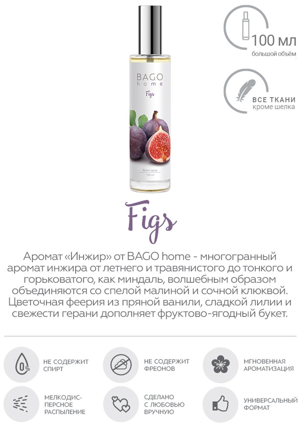 Ароматический спрей для дома BAGO home Инжир 100 мл
