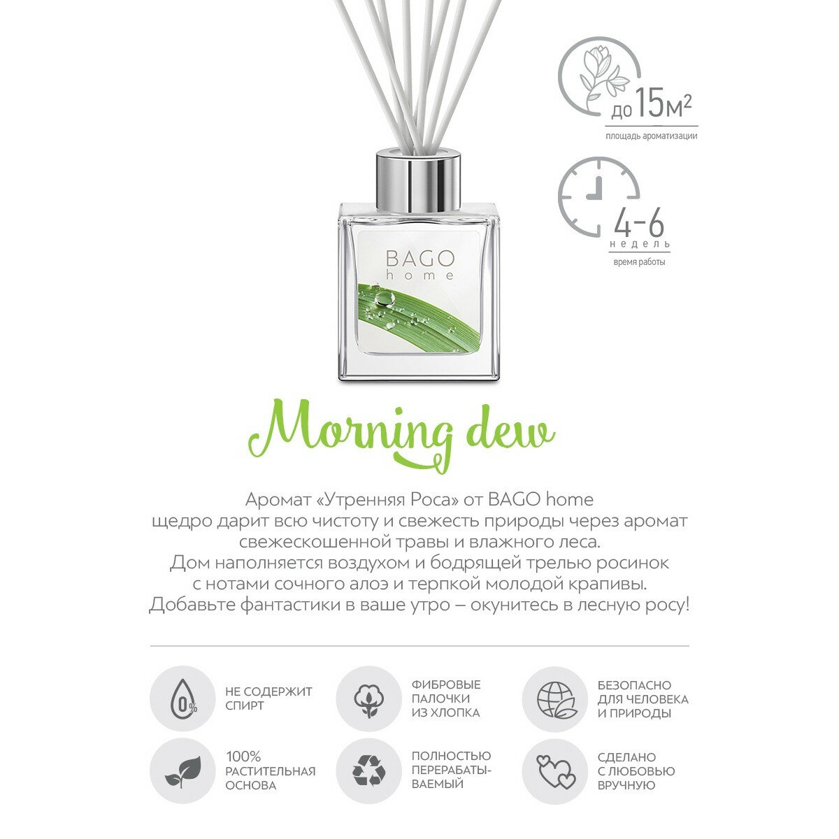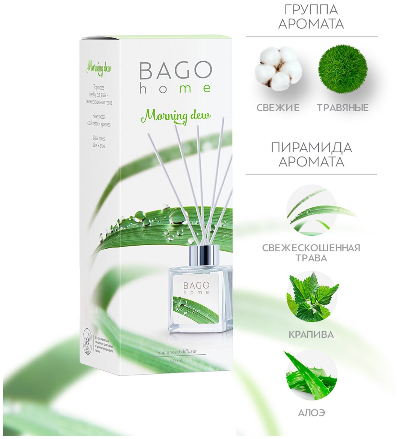 Ароматический мини-диффузор BAGO home Утренняя роса 50мл