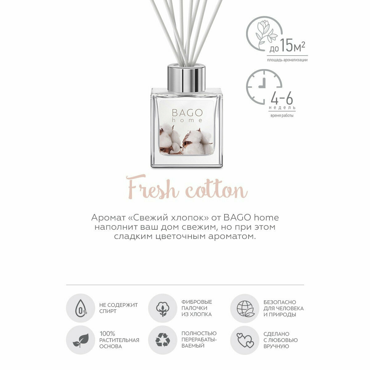 Аромадиффузор хлопок 50 мл Bago home