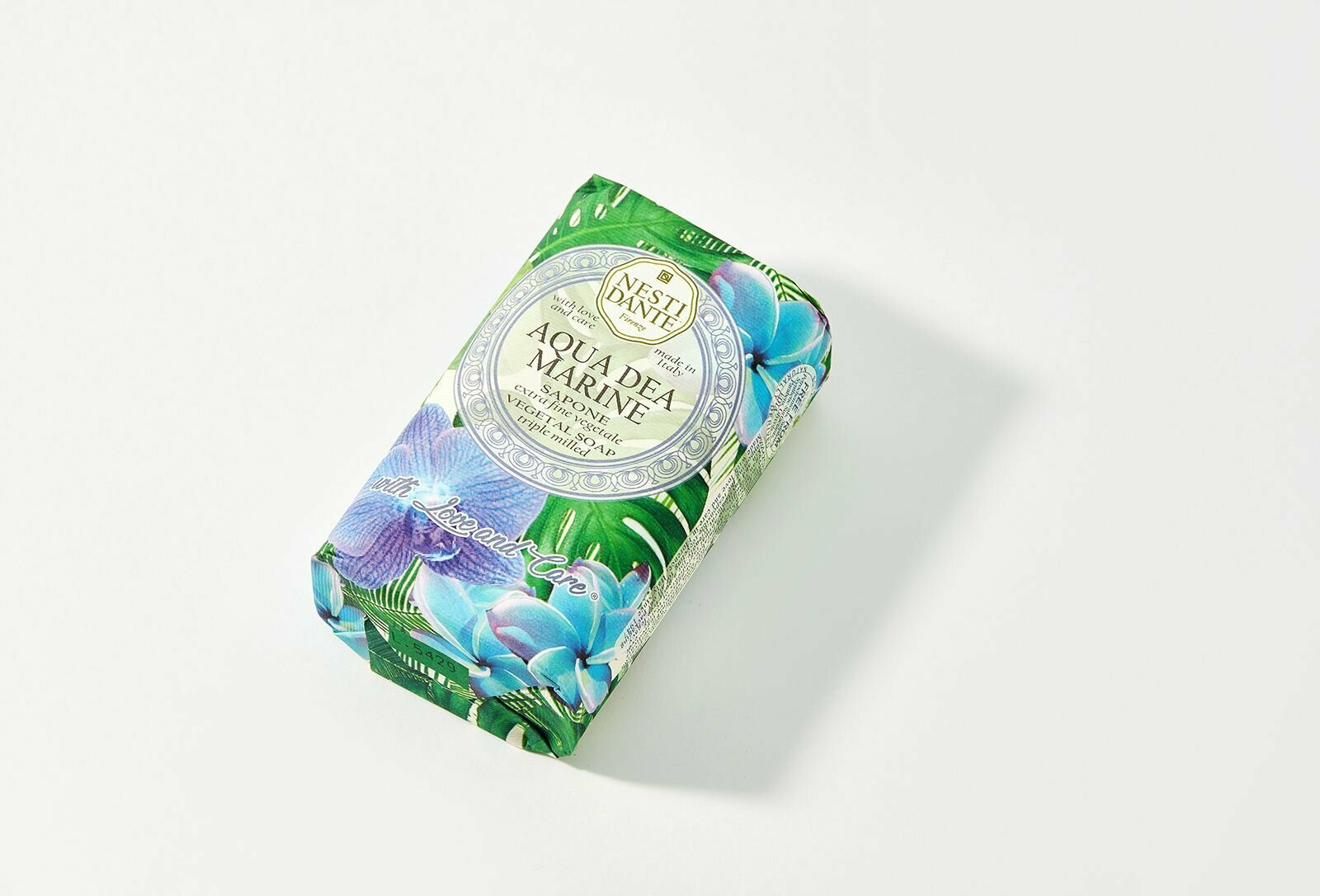 Мыловары и парфюмеры Nesti Dante с гордостью представляют новую линию мыла «С Любовью и Заботой». Оставаясь верными своей философии «работать, чтобы быть лучшими, а не самыми крупными» мастера Nesti Dante создали новую формулу с активными ингредиентами, которые получены в ходе длительного процесса мацерации, что обеспечивает их высокое содержание в мыле. Аромат мыла Aqua Dea Marine (Морская Богиня) соответствует названию - стоить прикрыть глаза и кажется, что вдыхаешь соленый аромат моря. Экстракт гамамелиса (hamamelis virginia) оказывает антиоксидантное действие, сокращает секрецию сальных желез.