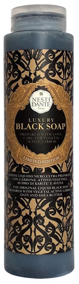 Роскошный черный гель для душа Nesti Dante Luxury Black Soap глубоко очищает кожу, улучшает циркуляцию крови. Полезные свойства входящих в состав золы коры и стручков какао способствуют увлажнению и обновлению клеток кожи. Масло ши помогает коже обрести мягкость и свежесть. Волнующая нота пьянящего пачули и пряного розового перца вместе с чувственным гиацинтом и свежим жасмином раскрывает неожиданно роскошный взрыв аромата геля для душа.