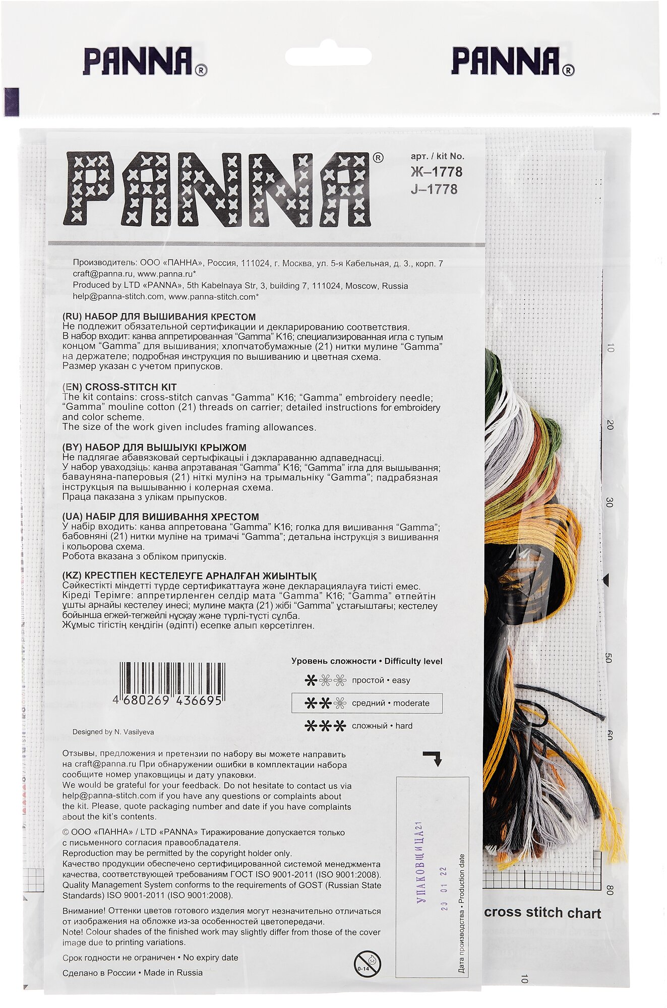 В набор для вышивания "Panna" входит: канва аппретированная "Gamma" К16, хлопчатобумажные нитки мулине "Gamma" на держателе, специализированная игла с тупым концом "Gamma" для вышивания, подробная инструкция по вышиванию и схема.