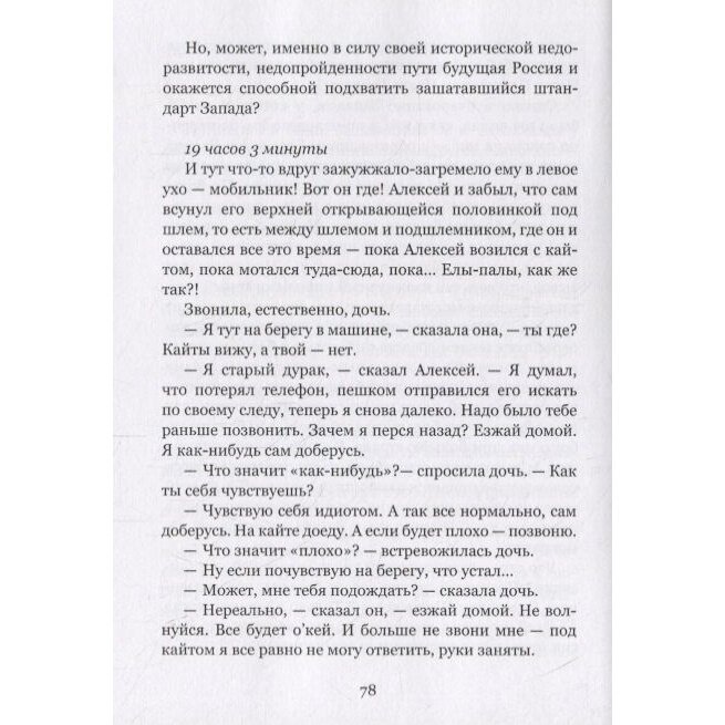 Новый роман известного петербургского писателя Игоря Куберского не только остросюжетен, что уже само по себе хорошо (он читается на одном дыхании), но и многопланов. При сравнительно небольшом объеме текста автору удается создать иллюзию целой жизни своего героя, попавшего в форс-мажорные обстоятельства, когда память начинает работать в особом режиме. Картины минувшего, возникающие в сознании героя, которому буквально приходится бороться за выживание (он попал в полынью), создают стереоскопический образ нашего времени, а само повествование приобретает черты эпоса. Роман полон интереснейших персонажей — наших современников и неожиданных сюжетов, написанных ярко и выразительно, в лучших традициях русской прозы. Он затрагивает весьма актуальные для наших дней темы, он — о любви, жизни и смерти, он оптимистичен, несмотря на свой драматизм, и безусловно будет интересен современному читателю.
