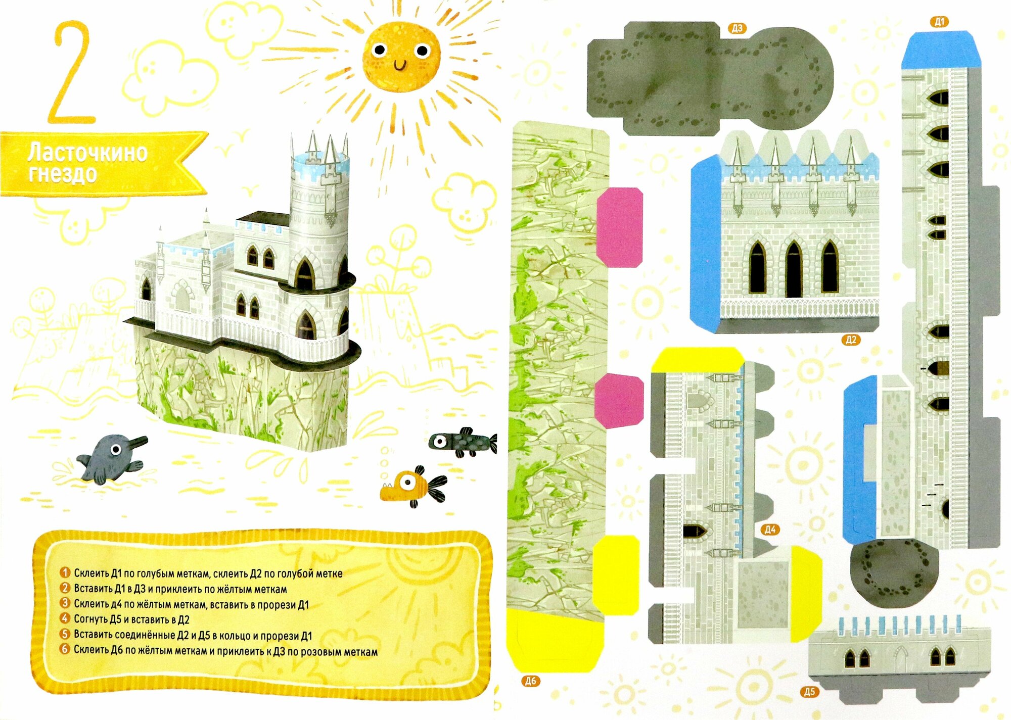 Вы сможете самостоятельно собрать объёмные фигуры достопримечательностей с помощью клея и разместить на большой карте России, которая находится внутри.