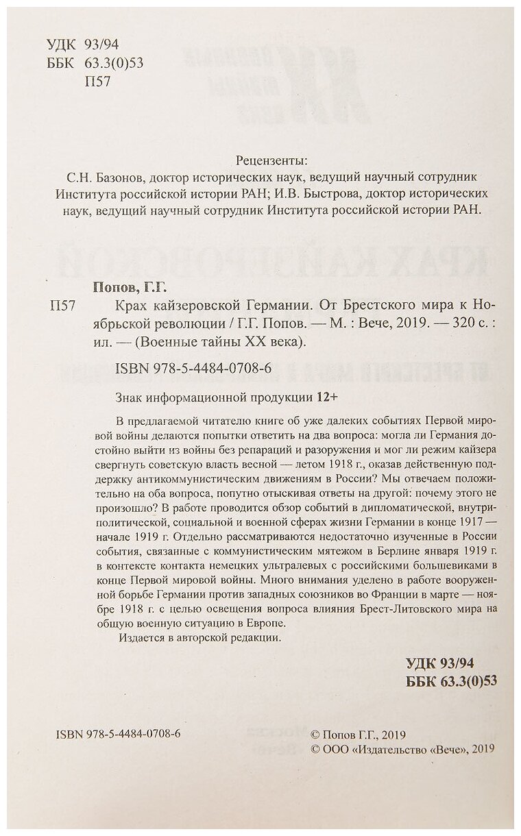 Крах кайзеровской Германии. От Брестского мира... (Попов Григорий Германович); Вече, 2019