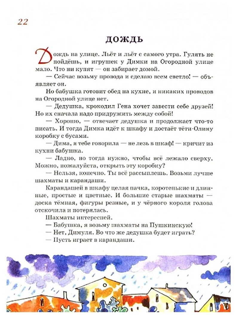 Книга состоит из небольших рассказов о самых ярких впечатлений детства. День рождения, поездка с родителями на море, дружба с Игорьком и Милочкой. Описана нехитрая Димкина жизнь без поучений, с юмором, просто и легко. А заканчивается книга рассказом о 1 сентября, когда Димка пошел в школу, испугался и попросил учительницу: «Откройте, пожалуйста, дверь! Мне не видно бабушку». Иллюстратор Софья Батурина.