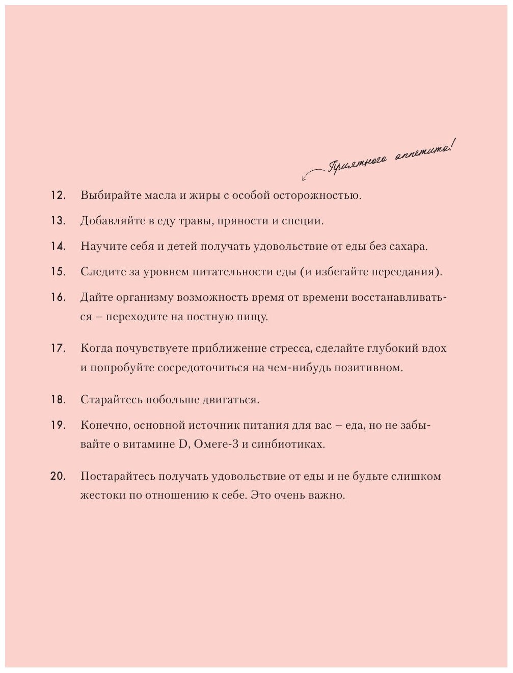 Не понравилось. Слишком много воды, текст от имени двух леди-авторов просто чудовищный. Суть книги-ешь меньше, ещё меньше, если можете-не ешьте ничего из магазинного мяса, хлеба и даже салат айсберг подвергся осуждению. При описании капусты броколли используется фотография капусты кейл. Смузи, ещё смузи, морковная ботва и высушенные хлебцы даже без фотографии готового блюда. Все остальные рекомендации известны и вызывают скорее к ответственности, а не к любви. Увы, книгу со своей полки убираю.