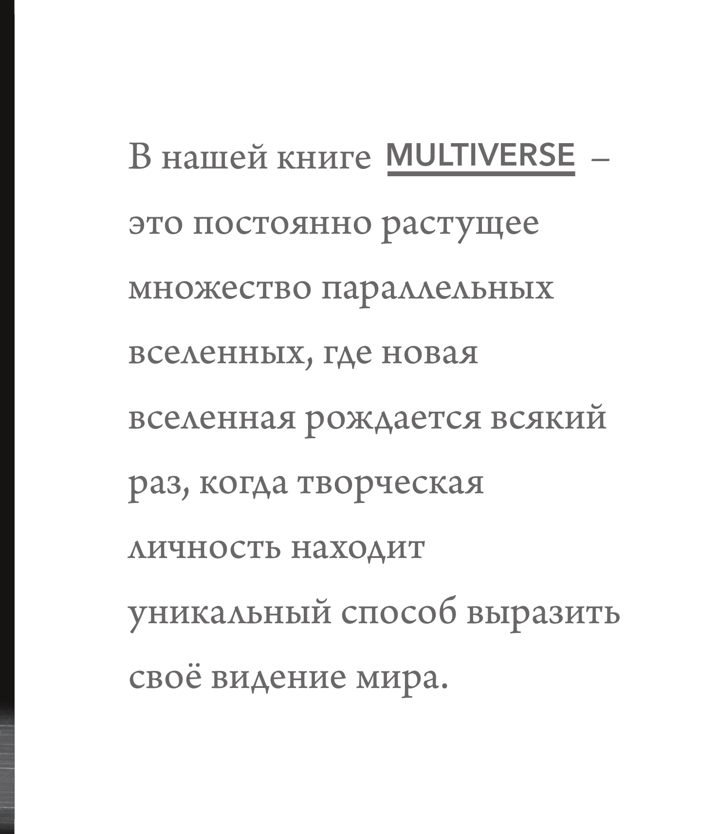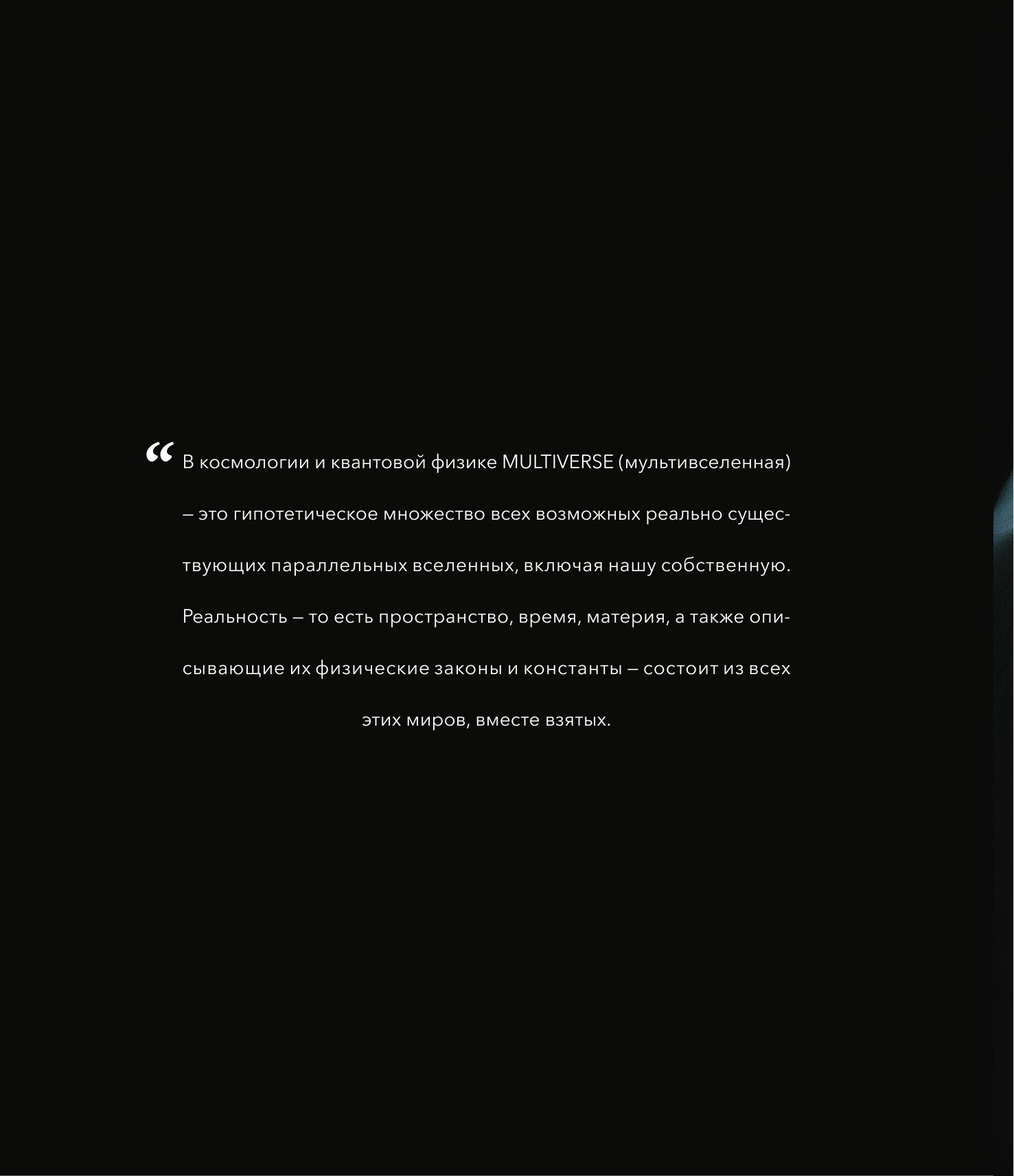 Мультивселенная - это новое искусство, созданное величайшей балериной современности - Дианой Вишневой. Прима балерина Мариинки, Американского театра балета, народная артистка России и множество других нагар и званий. Диана определяет направление развития культуры не только в России, но и в мире.. И делает ее интернациональной. Этот проект создан с соавторстве с величайшими деятелями культуры современности. Архитекторы, дизайнеры, хореографы, артисты, писатели - как они мыслят? Как творят? Зачем они это делают и чего хотят добиться? Все они ответят на эти вопросы, расскажут и даже покажут, как создается настоящее искусство. Риск, творчество, бунт и поиск - ключевые определения развития искусства. Если вы считаете себя человеком по-настоящему любящим искусство, то эта книга обязательно для вас. Издание выпущено лимитированным тиражом и содержит внутри уникальный код, по которому вы сможете увидеть документальный фильм про подготовку книги, интервью с Дианой и участниками проекта, а также репетиции Дианы.