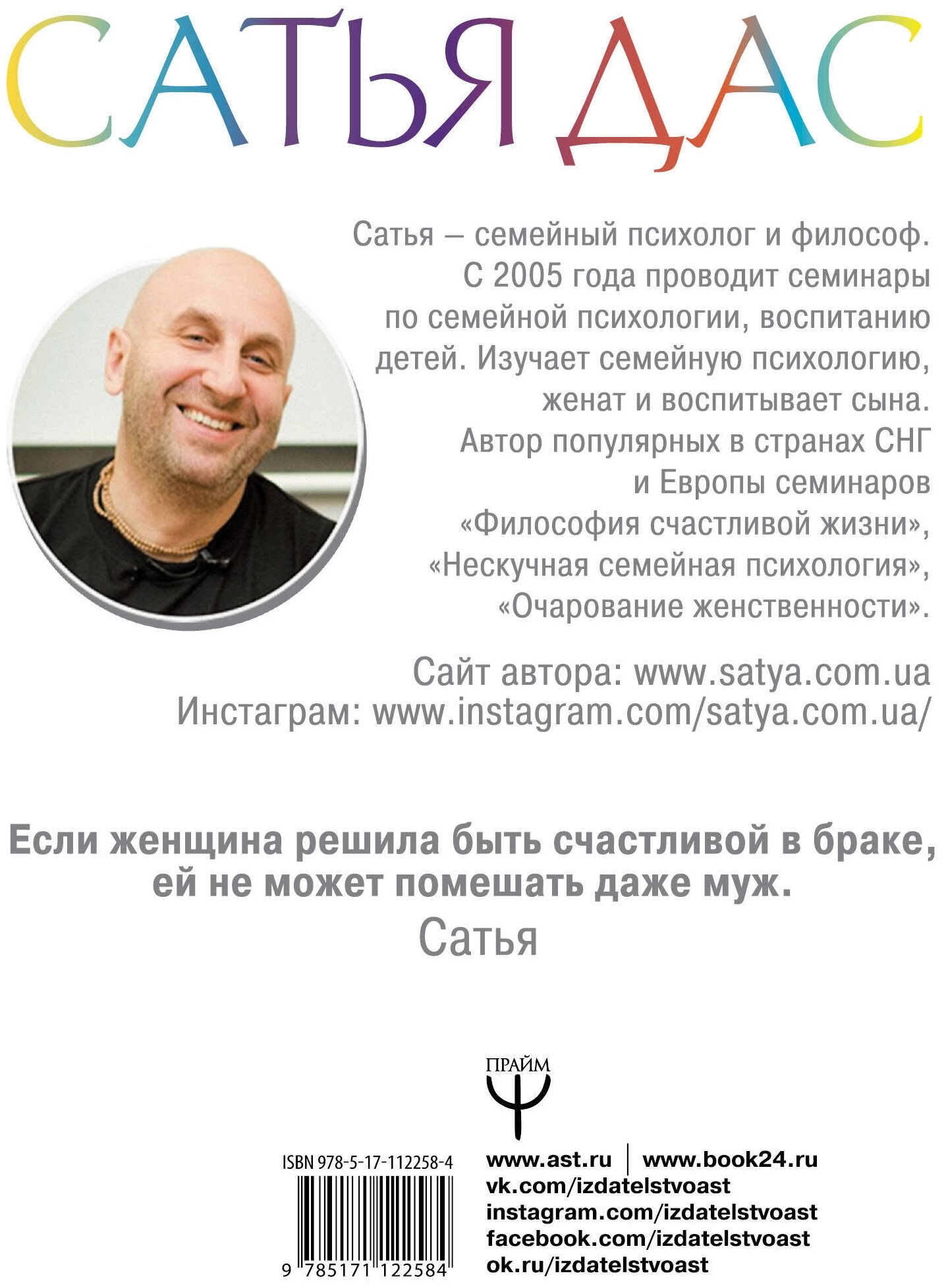Мудрые люди говорят: «Хочешь быть счастливой — стань достойной счастья». Известный семейный психолог, философ, автор бестселлеров Сатья утверждает, что только достойная женщина может построить счастливые отношения, которые не развалятся через пять минут после того, как тетенька в загсе скажет: «Можете поцеловать невесту». Достойная женщина в итоге получает все — любовь, семью, детей, материальное положение. А как стать такой женщиной? Начать можно с этой книги. Вы узнаете: