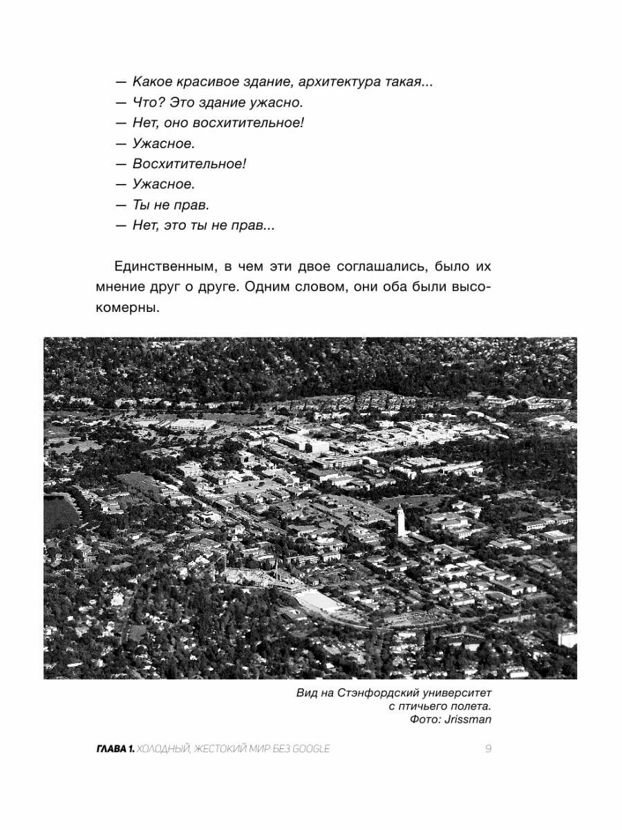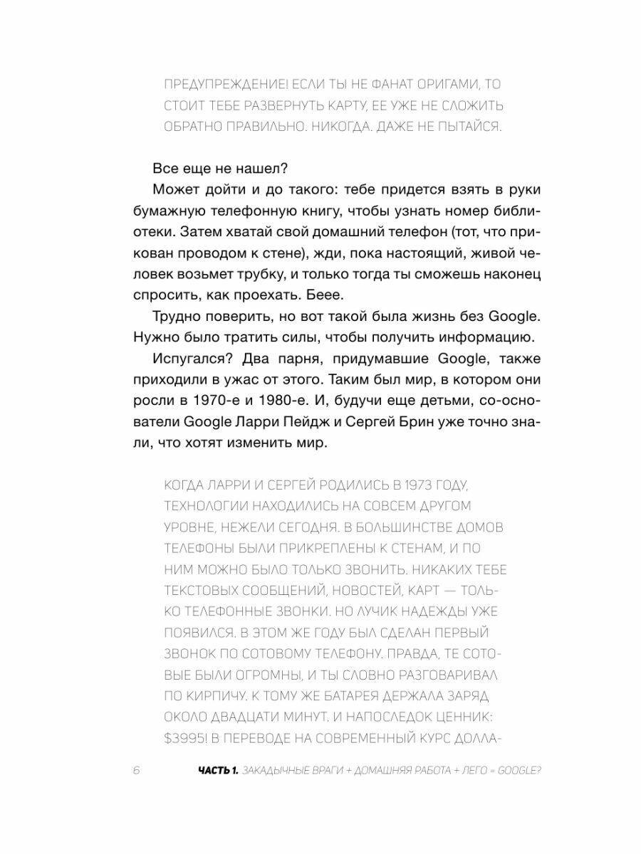 Очень интересная книга, познакомиться однозначно стоит, вся история создания и становления компании Googl. Написанно все просто и интересно, после прочтения можно бросаться различными фактами про Google и его создателей. Мне как человеку, который и не видел никогда мир без телефонов и соц. сетей, было безумно интересно читать о становление такой глобальной сети, как Googl, читать о том как два человека смогли создать такое и привнести в мир такую маштабную систему.