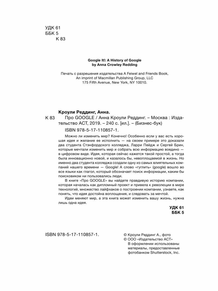 Книга: Про GOOGLE (Анна Кроули Реддинг); Издательство АСТ, 2019