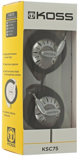 Наушники KOSS Koss KSC75 - это удобные первоклассные наушники с креплением типа клипса. Особенности конструкции делают их ношение комфортным неограниченное время, при этом амбушюры хорошо прилегают к ушам, что гарантирует полноценную передачу низких частот. Koss KSC75 обеспечивают лучший звук для наушников данного класса на поразительно широком диапазоне частот.