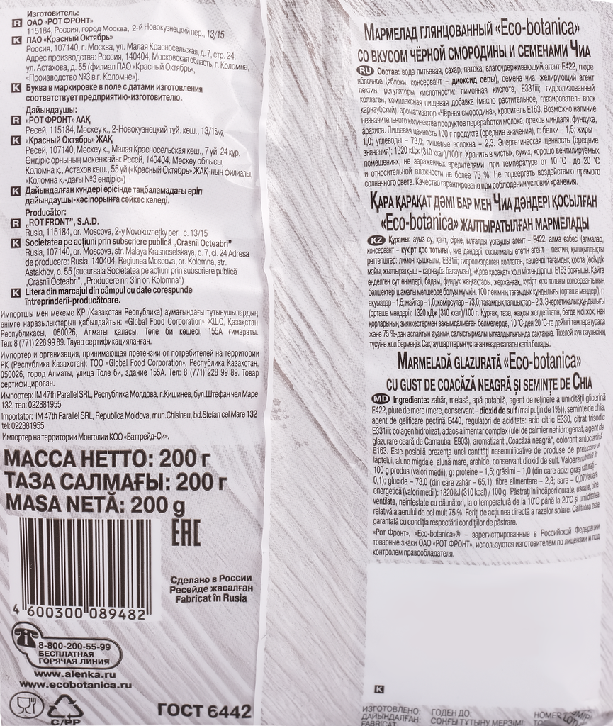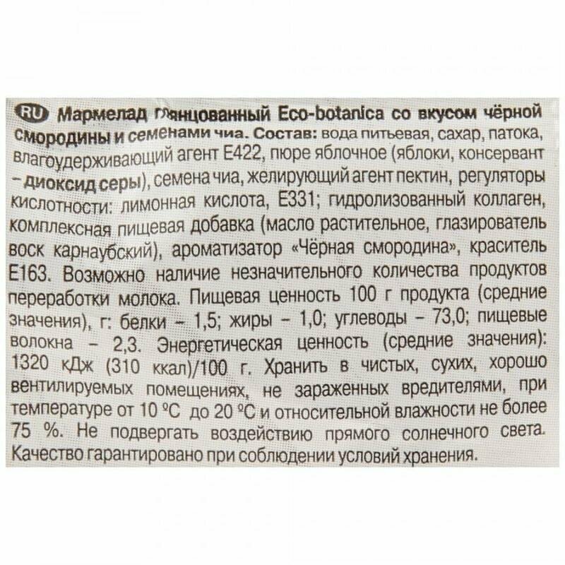 Мармелад Eco Botanica с черной смородиной и семенами Чиа 200г Красный Октябрь